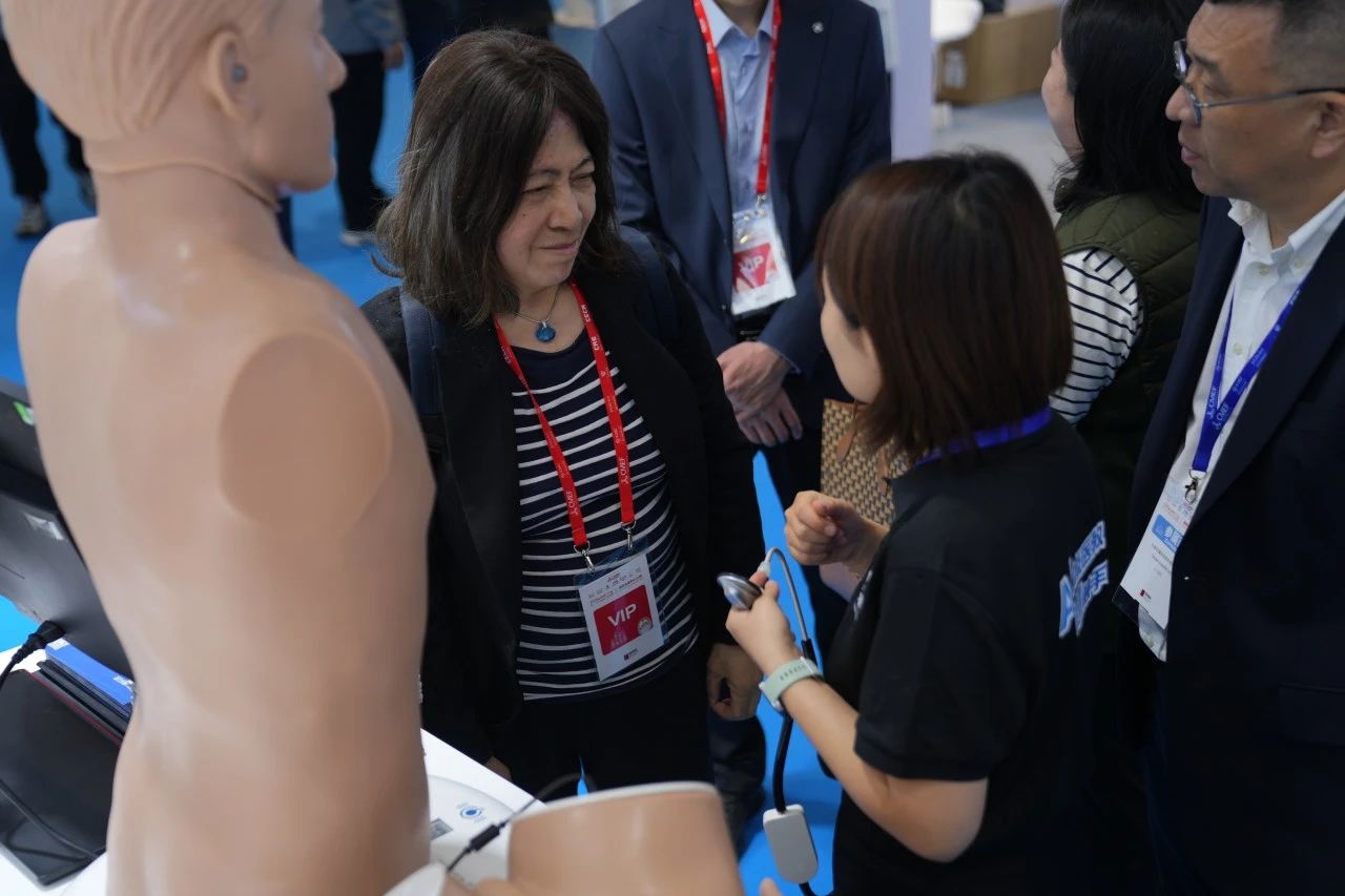 Guo Xiangping, secretary-general of Beijing Association for Medical Education, visited the Tellyes exhibition area and highly praised Tellyes for this exhibition. She also emphasized the breakthroughs of Tellyes in the fields of Physiologically-driven Technology and AI-based Virtual Patient, calling it setting a new benchmark for clinical medical education.