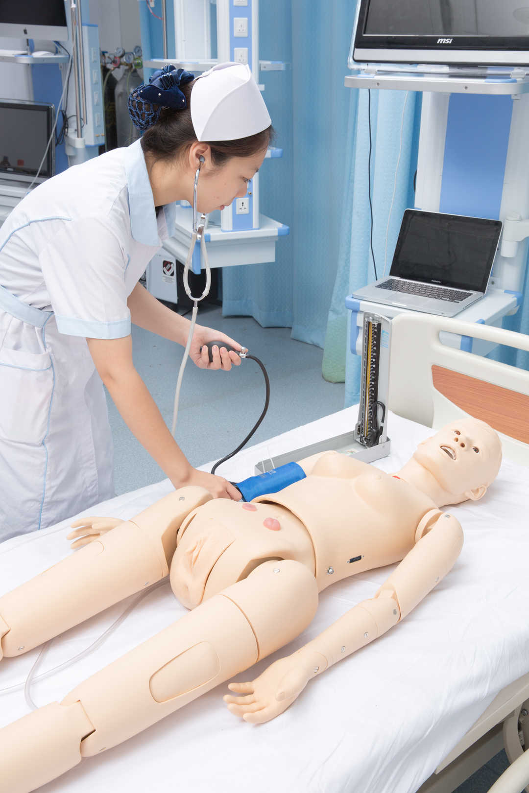 1)    Non-invasive blood pressure can be measured with real BP monitor; stethoscope included