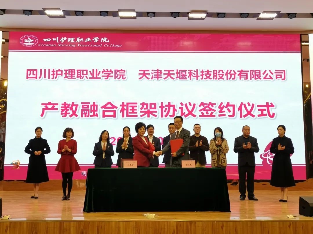 10月25日,天津天堰科技股份有限公司与四川护理职业学院签署战略合作框架协议暨“虚拟仿真研创中心”揭牌仪式,携手探索合作新模式、新机制,促进产教融合,实现企业与学校“双向赋能”。